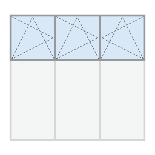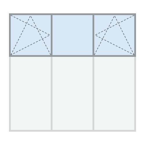 med fyra öppningar och två fastkarm, alle med 1x2 glasfält nedan (PVC_EU-DKVHFKRM3-11-12-FKR3)