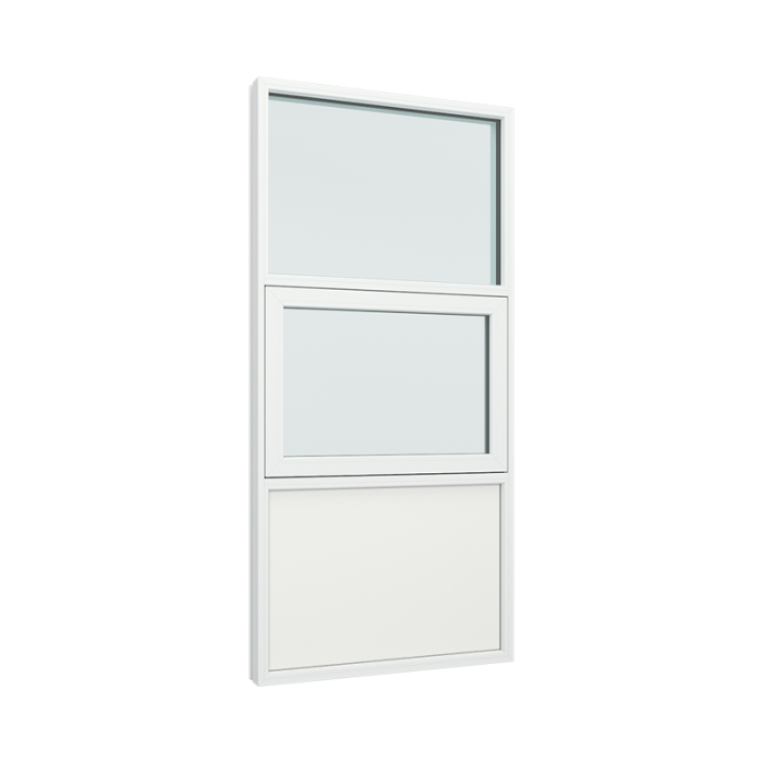 med 2 glasfält, 1 fyllning nedan och glidhängda fönster i mitten (PVC-U1-13-TM-1F)