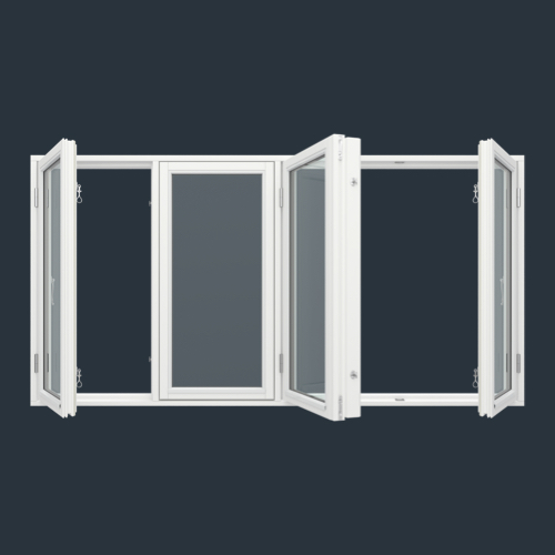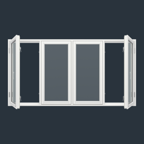med 2x4 glasfält fasta fönster med ram i mitten (PVC-S4-11)