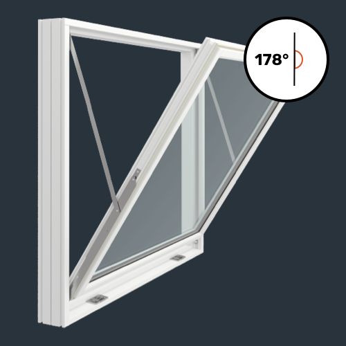 Med ett toppsving fönster kan du rotera ditt fönster 178 grader så du kan putsa utsidan från insidan.