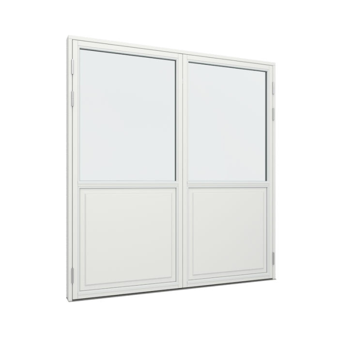 Bemärk: Vid inåtgående dubbeldörrar När du skall välja öppningsrettning på din dubbeldörr, är det viktigt att du kontrollerar, om dörren kan riskera att bli utsatt för regn och blåst utan möjlighet för lä. Konstruktionsmässigt kan diubbelt inåtgående dörrar nämligen inte säkras 100% mot vattenintängning vid väder som skyfall. För att säkra optimal täthet skall 3 punktlåsen vara aktiverat och vi rekomenderar alltid utåtgående dörrar omden inte står i lä. Det ges inte garanti mot vattengenomträngning på bakgrund av ovanstående förhållanden. Det är normalt att branchen tar förbehåll för detta. Vi har valt att göra detta förbehåll mer synligt, så de kan välja utåtgående dörrar.
