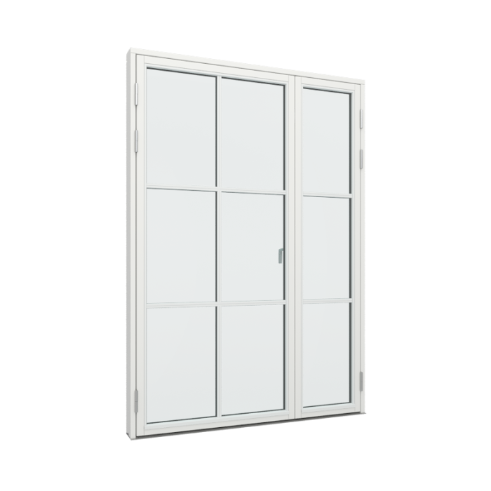 I salningsspåret på de inåtgående dörrarna, kan skruvarna till gångjärnen vara synliga, då salningsspår och skruvposition ligger tätt på varandra samtidigt som det är liten plats mellan dem. Vi rekommenderar att du beställer utan salningsspår på de inåtgående dörrar, men beställer en u-list i trä, när du köper fönsterfoder/salningar mm. Alternativet är att acceptera att den eventuella synlighet av skruvar från gångjärnen i salningsspåret och mindre plats.