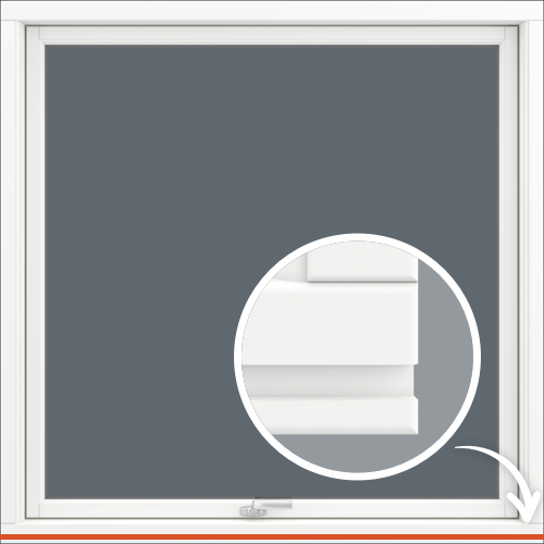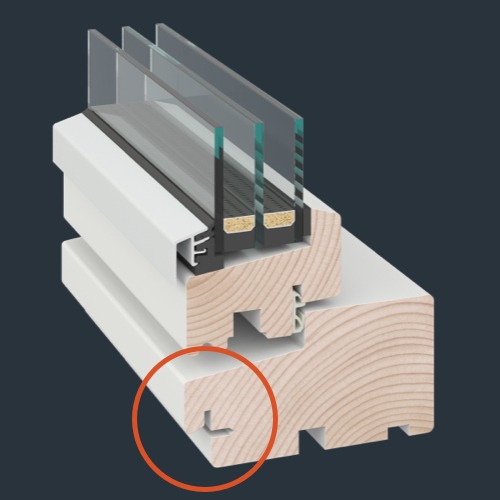 Spår till fönsterbleck till fönster i trä. Kom ihåg Angående Glaspartier: Om det väljs tröskel i aluminium eller Hård trä er glaspartiet utan Spår till fönsterbleck.