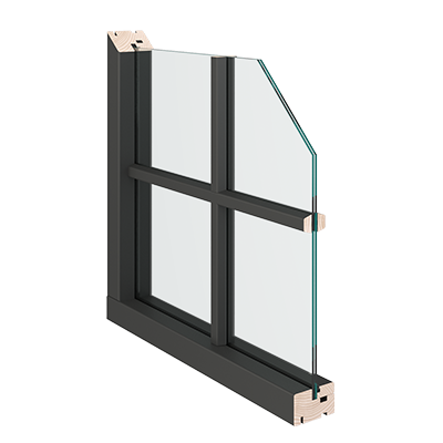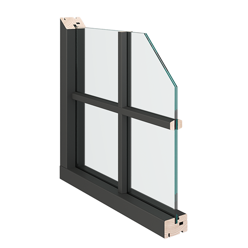 Invändigt fönster:Till montering i invändiga väggar. Utfört med rak fals och utan alu fönsterbleck.