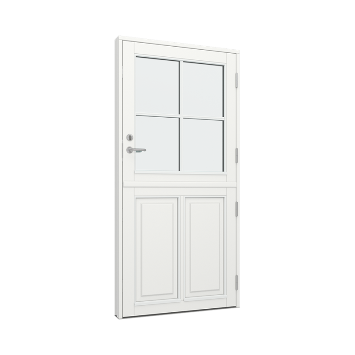 Var uppmärksam på att halvdörrar alltid öppnas utåt. På den nedersta del av dörren är det monterat ett spanjolett handtag och på översta halvdelen är det monterat handtag och cylinder