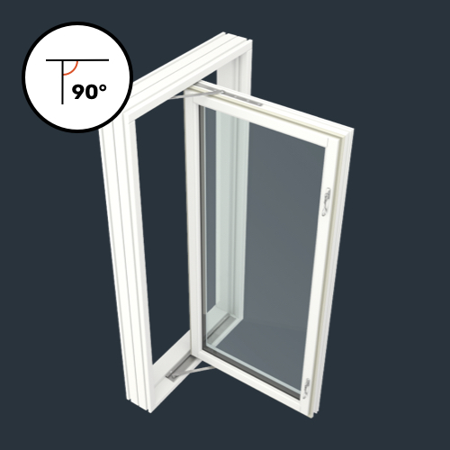 Bemärk att handtag med eller utan broms kräver en minimumhöjd på 55 cm, utvändigt karmmått. Om du beställer handtag med broms, vill fönstret max kunna öppnas 90 grader