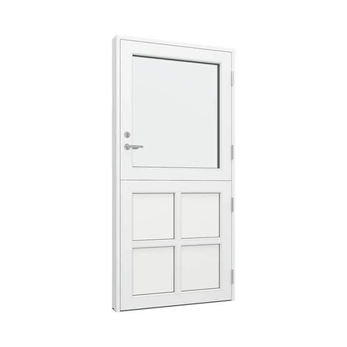 Här kan du välja, hur ditt element skall öppna Var uppmärksam på att halvdörrar alltid öppnas utåt. På den nedersta del av dörren är det monterat ett spanjolett handtag och på översta halvdelen är det monterat handtag och cylinder.
